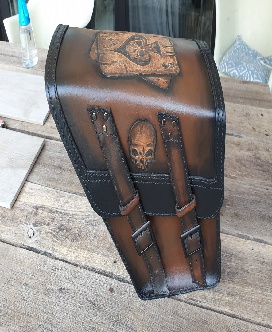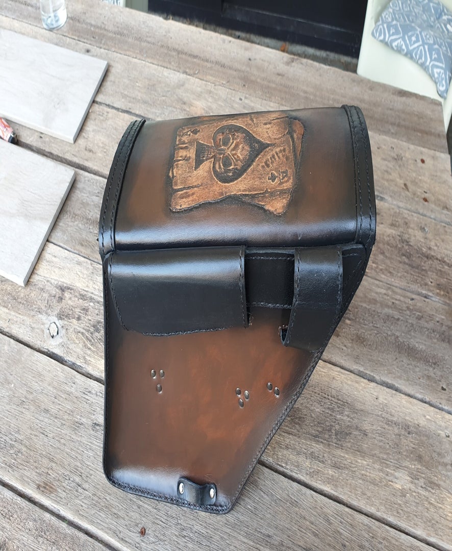 A vintage rust-brown leather motorcycle bag exudes a timeless, rugged charm, perfect for enthusiasts of classic motorcycles and authentic accessories. The Ace of Spades is a card with a rich history and symbolism, often associated with power, death, and new beginnings.