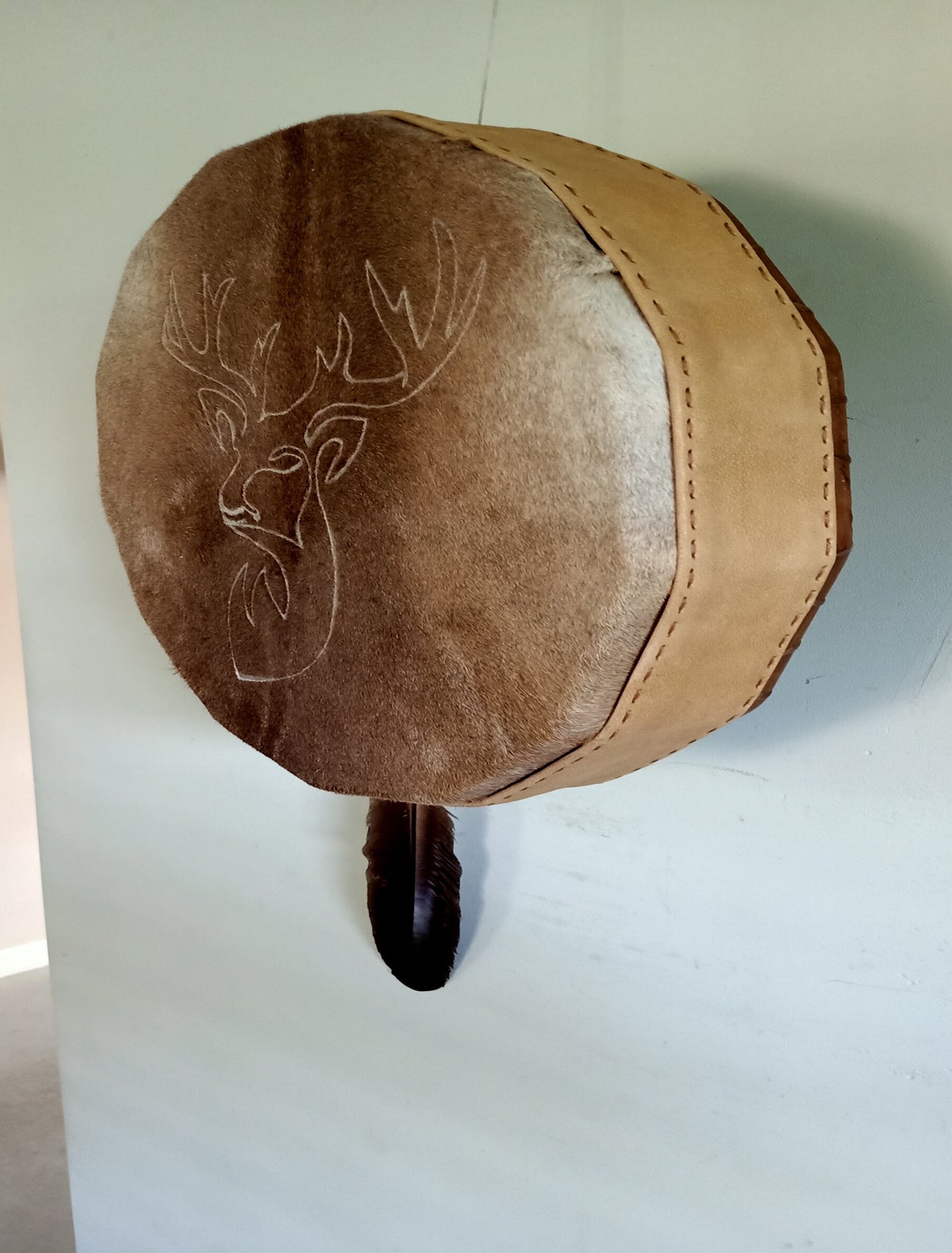 This drum is made from a client's deceased horse (Pancha),Making it deeply personal.Drum Willow Wood 45 x 7 cm